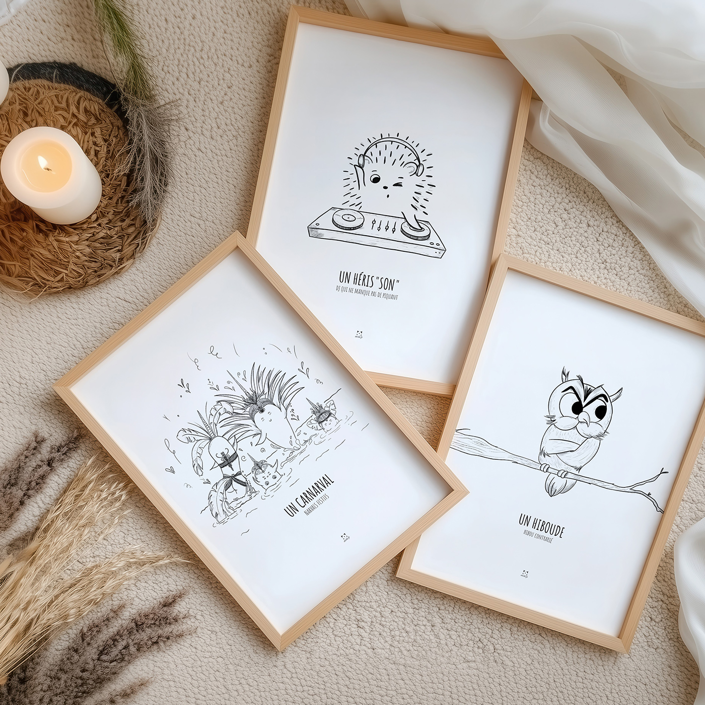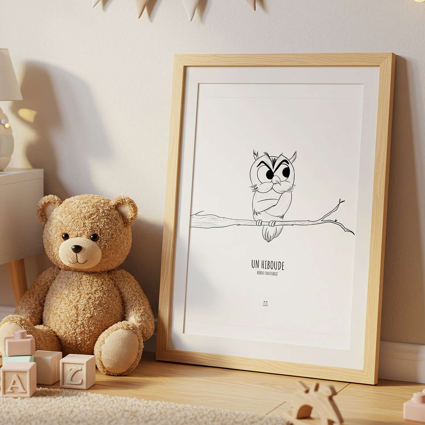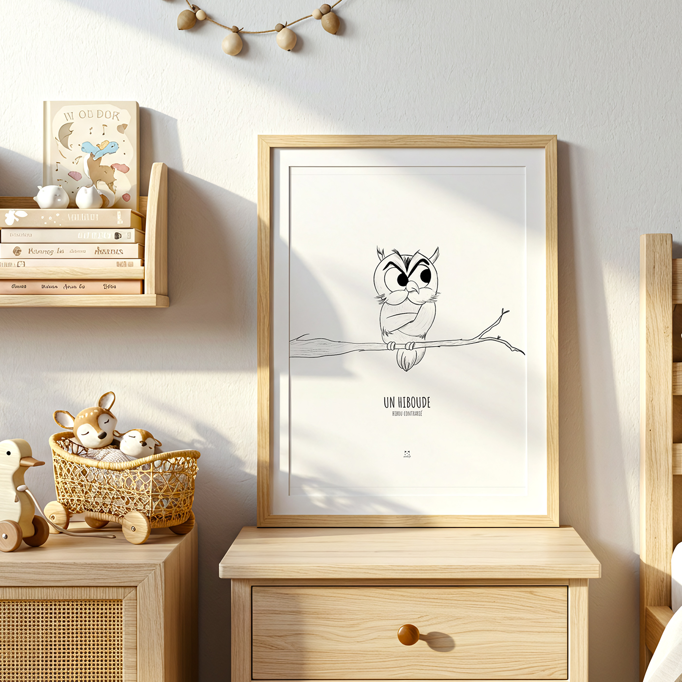 Si vous aimez les jeux de mots et les animaux alors vous aimerez notre collection « Jeux d’ani-mots » ! À s’offrir ou à offrir ce hibou qui boude (hiboude) égayera une chambre d’enfant ou de bébé ! Si vous cherchez une déco dans le thème de la forêt qui allie tendresse et humour alors cette CHOUETTE déco est faite pour vous 🙂 Un poster qui plaira aux parents comme aux enfants !